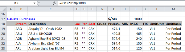 This trick works with formulae, as well as numbers. Suppose you have a spreadsheet to calculate the limits on crude purchases, based on a standard cargo size and the number of cargos available.
