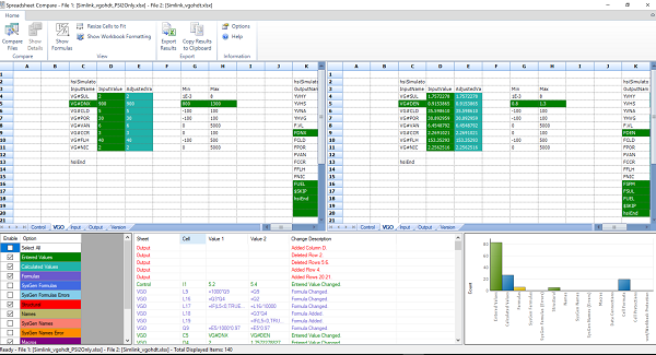 | The key to the colours is found in the lower left segment. Here you can also control the types of differences to be highlighted. I often turn off the differences in Calculated values to reduce clutter, as these are usually a consequence of the differences in entered values. |